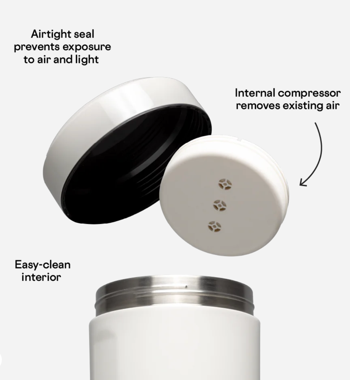 Designed with an airtight seal, this canister features an internal compressor to eliminate air and light, preventing oxidation, which means coffee beans stay fresher, for weeks longer. Now available in sleek Ceramic Slate and Oatmilk.